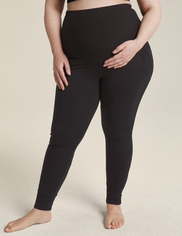 Calça de moletom de maternidade dobrável em fleece aconchegante para crescerem juntas.